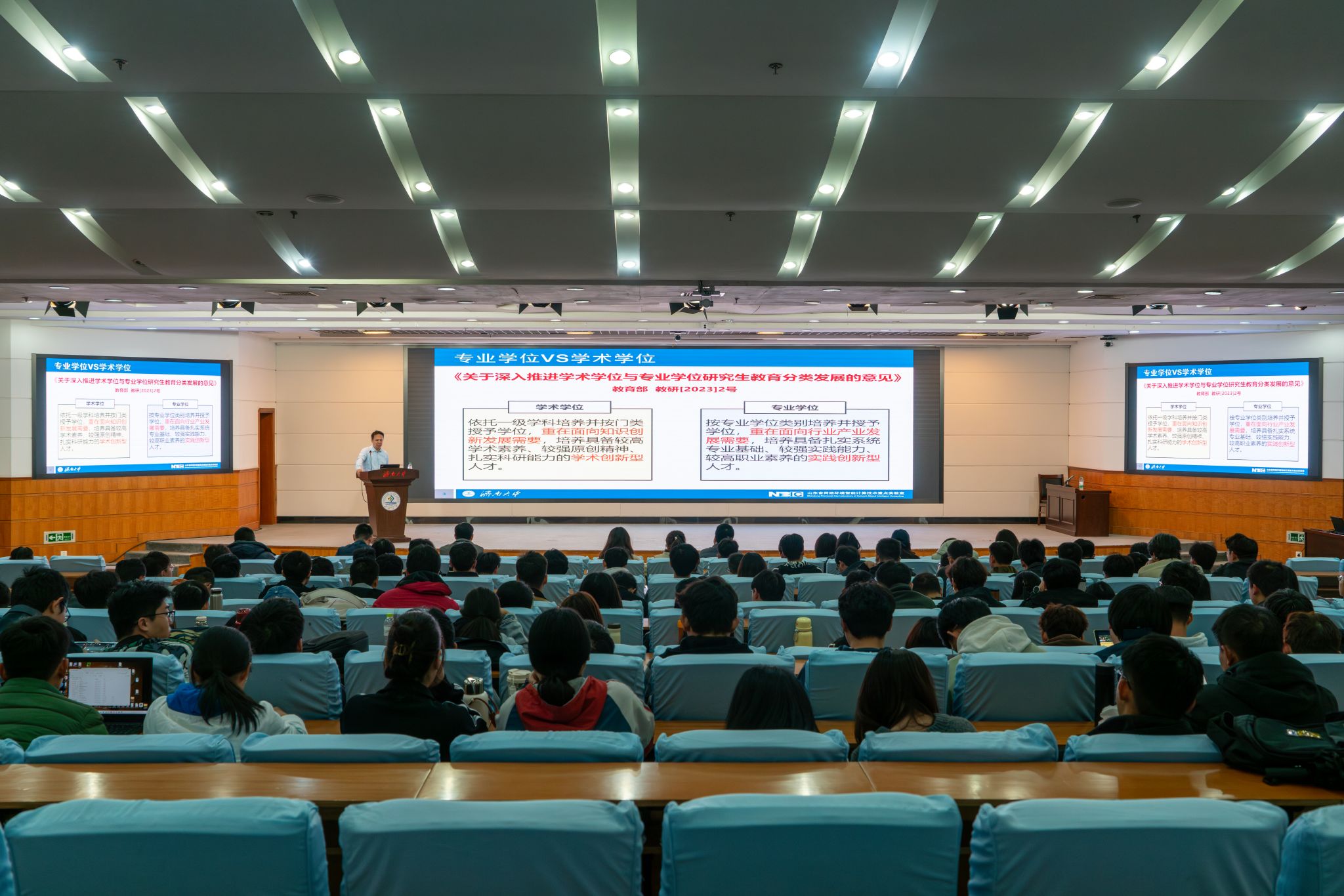 在第一学术报告厅隆重举行2025级研究生入学教育暨学风建设大会。学院领导班子成员、学院研究生管理人员、辅导员以及2025级全体研究生参加了大会。大会由学院党委副书记、副院长郝伟主持。